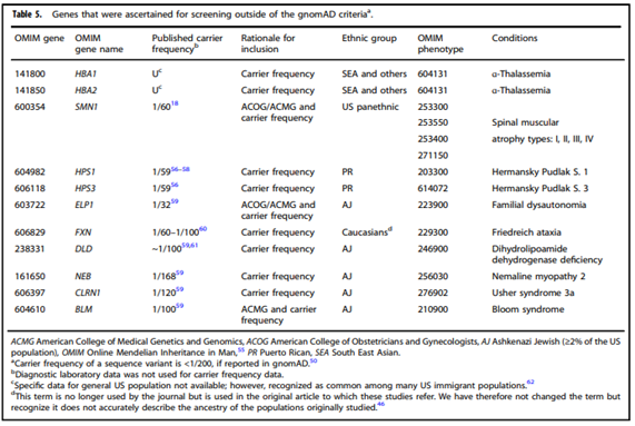 Note 1: Please see the “Guidelines and Recommendations” section of this policy for ACMG’s tiered system based on carrier frequency (Tables 1 – 6).